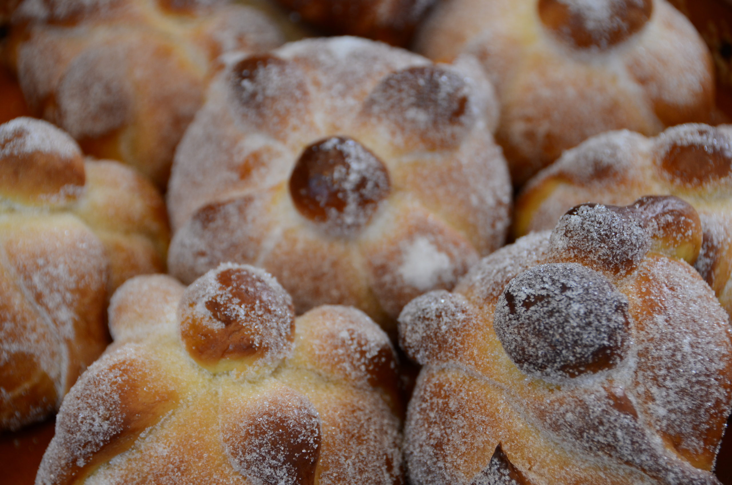 El pan de muerto, para quien no haya escuchado la historia de sus orígenes y que hasta el día de hoy yo no conocía en su totalidad, data de la época prehispánica, cuando ya formaba parte de la ofrenda para los antepasados, pero su preparación era a base de semillas de amaranto molidas, tostadas y se dice que se bañaba con sangre de personas sacrificadas en honor a los dioses Izcoaxauhqui o Huehuetéotl. No obstante, durante la conquista de México, los españoles rechazaron este ritual y comenzó a prepararse un pan de trigo con forma de corazón y se bañaba con azúcar pintada de rojo. Con el tiempo la preparación ha cambiado y el estilo varía en distintas zonas geográficas del país. Evidentemente yo busqué el estilo propio que desde niña comí en el Distrito Federal.