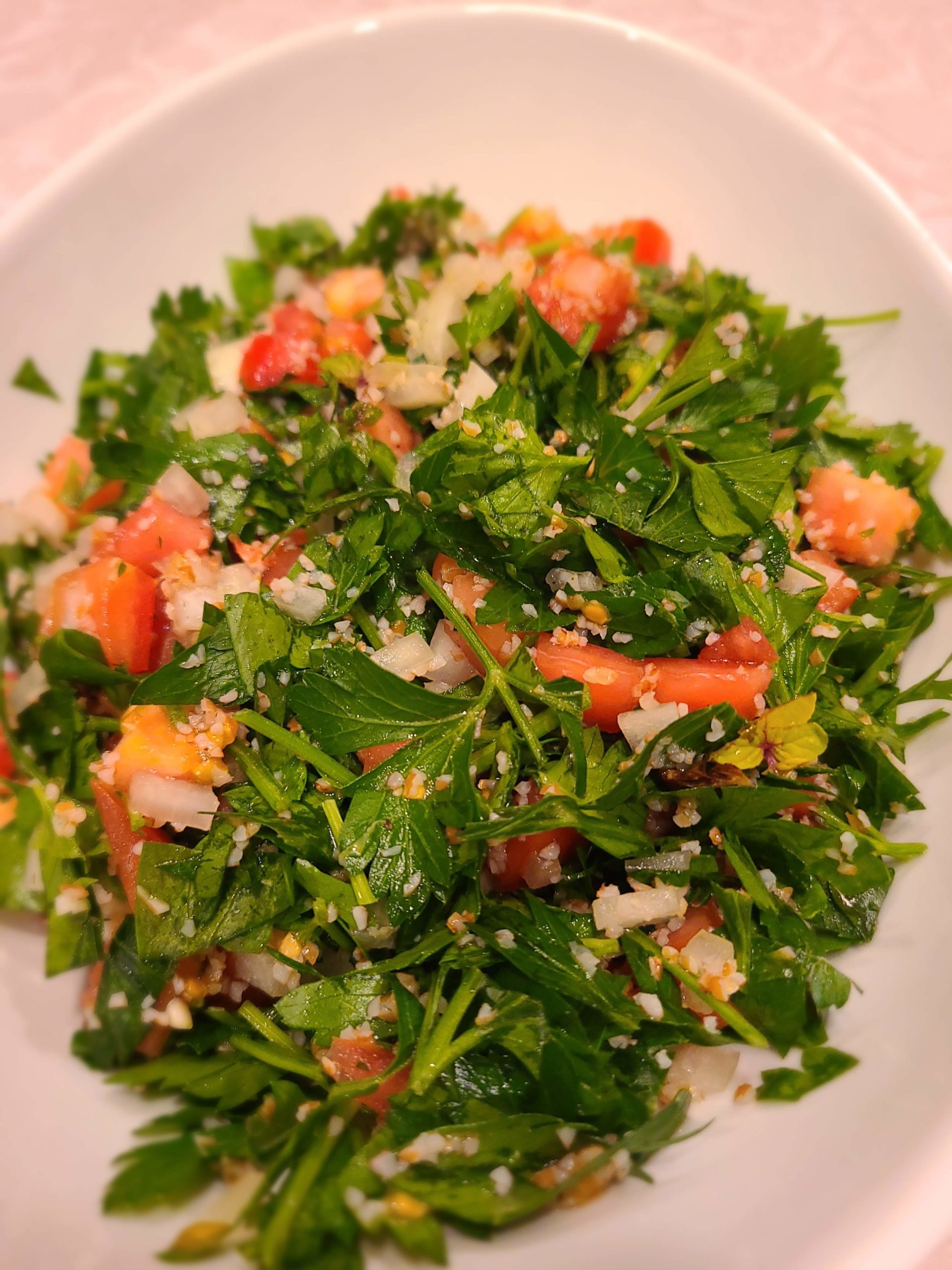 Por curiosidad anduve investigando y resulta que esta ensalada es de origen sirio, pero altamente popular en otros países de la región. Aquí les comparto lo que yo preparé: