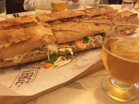 We were not sure we would be able to finish the re-visited version of a Po’Boy prepared in traditional French baguette. Believe me, this was everything but poor, for it had plenty of textures and flavors that exploded in my mouth. Fresh, creamy, minty. It was like having a fresh summer shellfish salad in a sandwich. As a last “main course” a new plate came along together with its own beer as well, and whilst we were all stuffed, the look of it, and the explanation of the plate made us all desist and fall into the foie-gras filled hamburger with a side of sweet potatoes and an Espelette Pepper Mayonnaise.