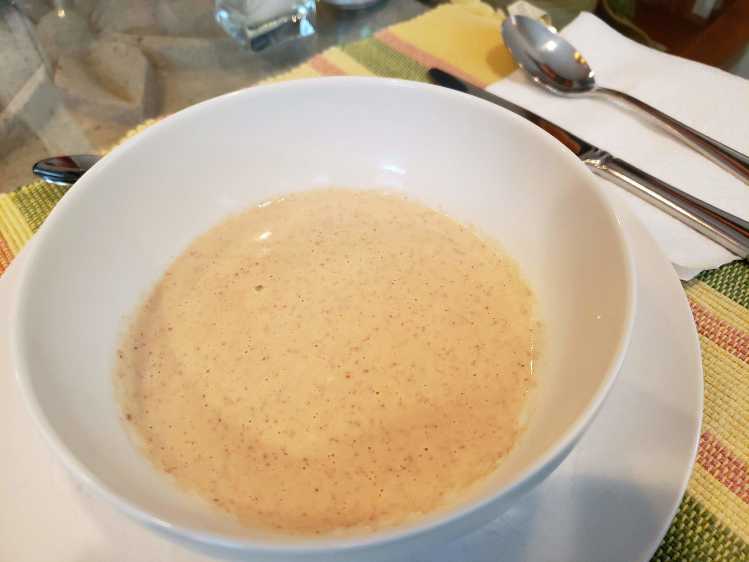 Cuando terminé la educación primaria hubo misa y fiesta con banquete y mariachis. De ese festejo que recuerdo bastante bien, lo único que se me quedó en la mente del comilón fue el primer tiempo, una crema de nuez. Y bueno, como por ahí dicen que hasta el 40 de mayo no te quites el sayo, pues después de salir al jardín y sentirnos en pleno verano, la temperatura vuelve a bajar y parece ésto pleno inicio de primavera con temperaturas de apenas 10 ó 15 grados centígrados. Obviamente, en la búsqueda de usar los ingredientes al máximo y salir lo menos posible de casa durante el confinamiento, me dispuse a tratar de imitar ese velouté, pero saltándome el uso de la harina que normalmente se le pone a este tipo de sopa cremosa.